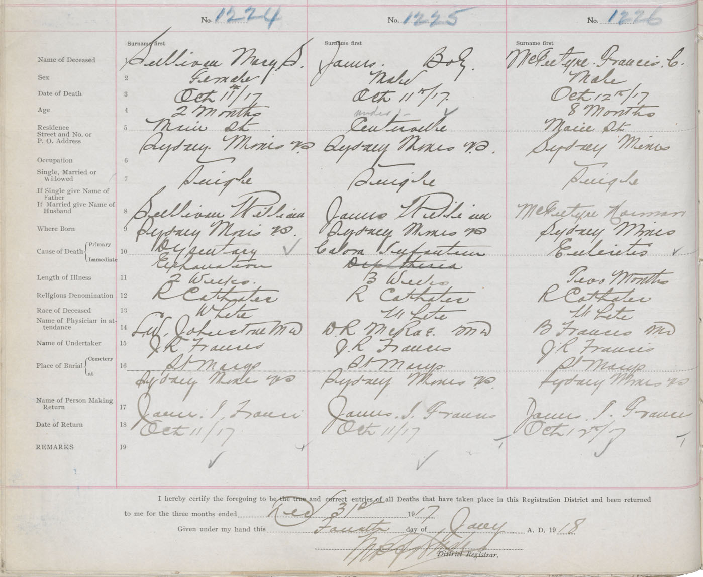 Death Registration: Year: 1917 book: 29 page: 300 number: 1224