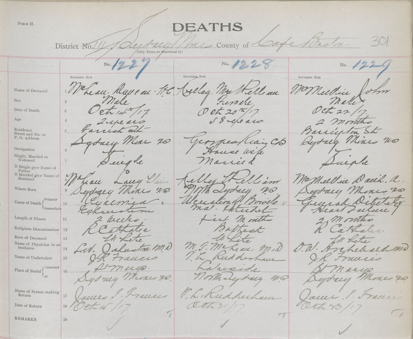 Death Registration: Year: 1917 book: 29 page: 301 number: 1227