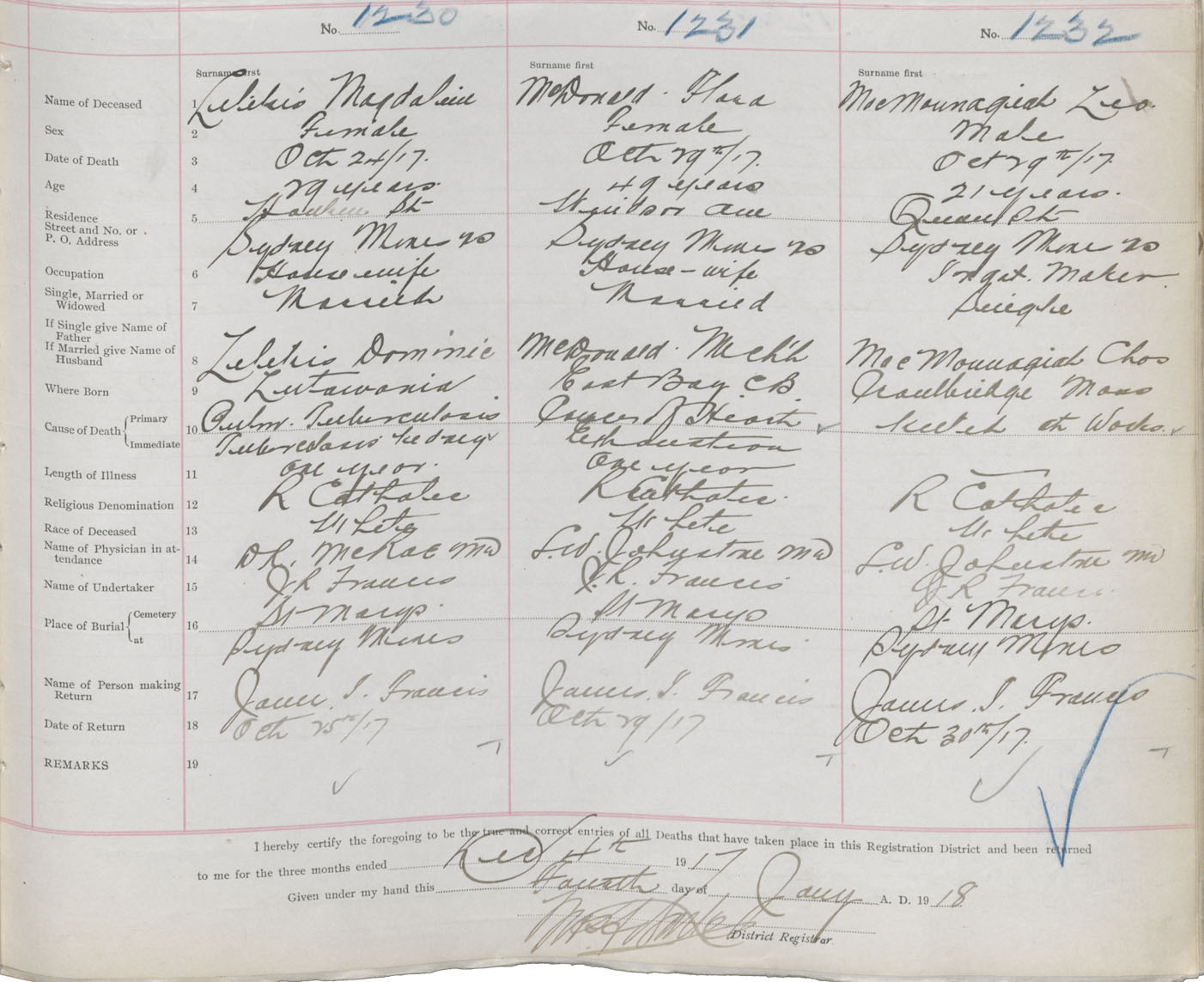 Death Registration: Year: 1917 book: 29 page: 301 number: 1230
