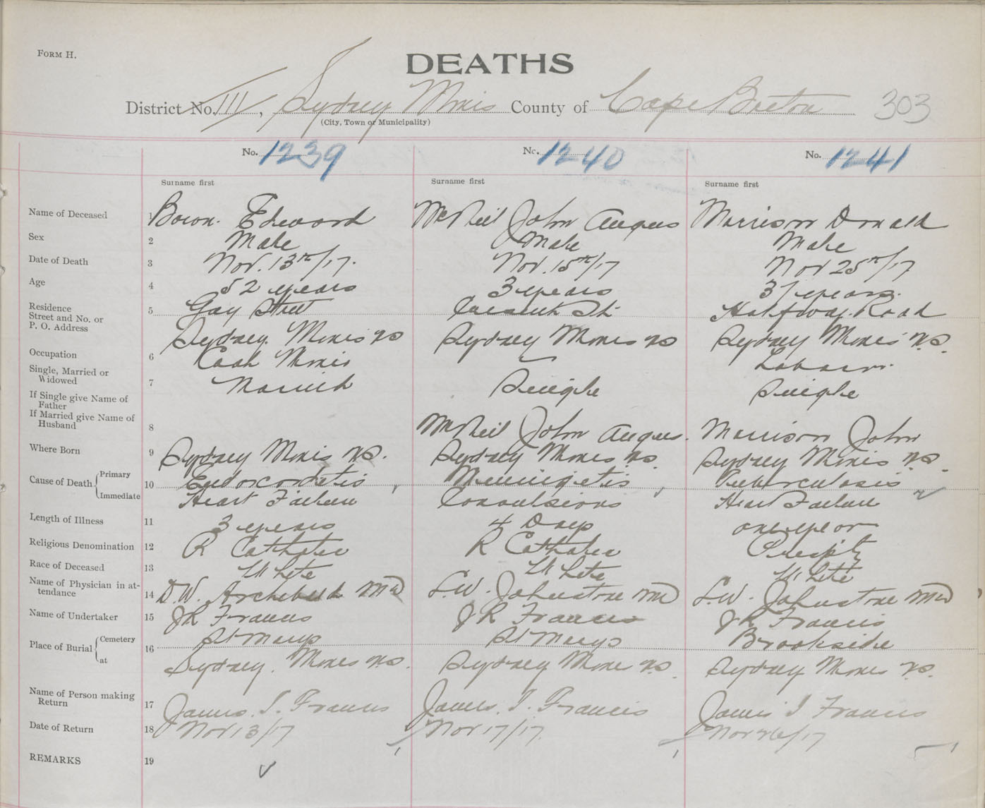 Death Registration: Year: 1917 book: 29 page: 303 number: 1239