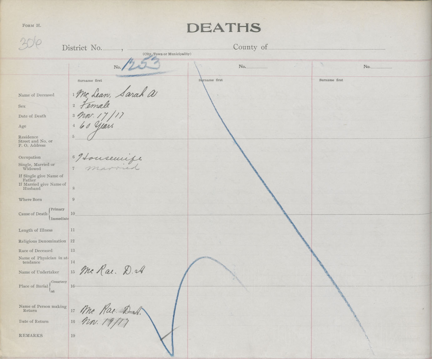 Death Registration: Year: 1917 book: 29 page: 306 number: 1253