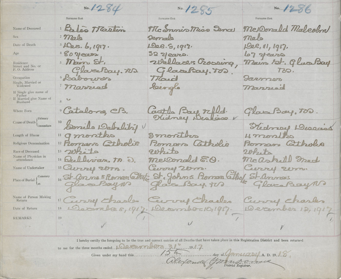 Death Registration: Year: 1917 book: 29 page: 312 number: 1284