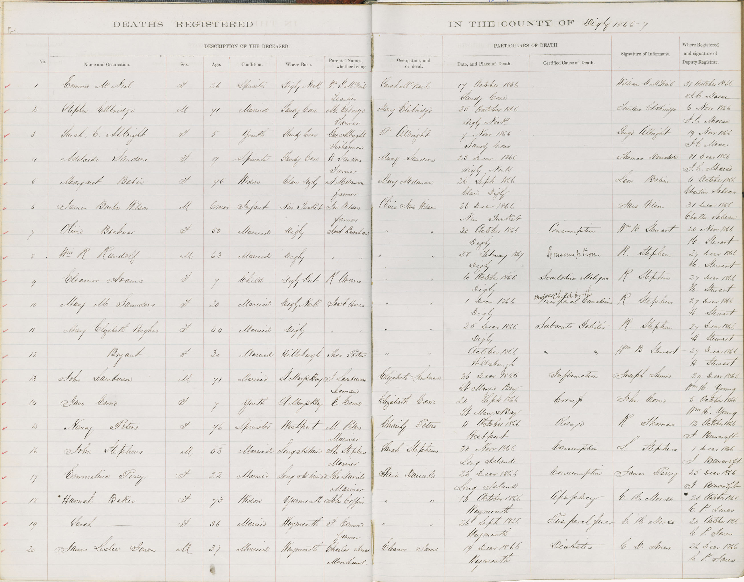Death Registration: Year: 1866 book: 1806 page: 12 number: 1