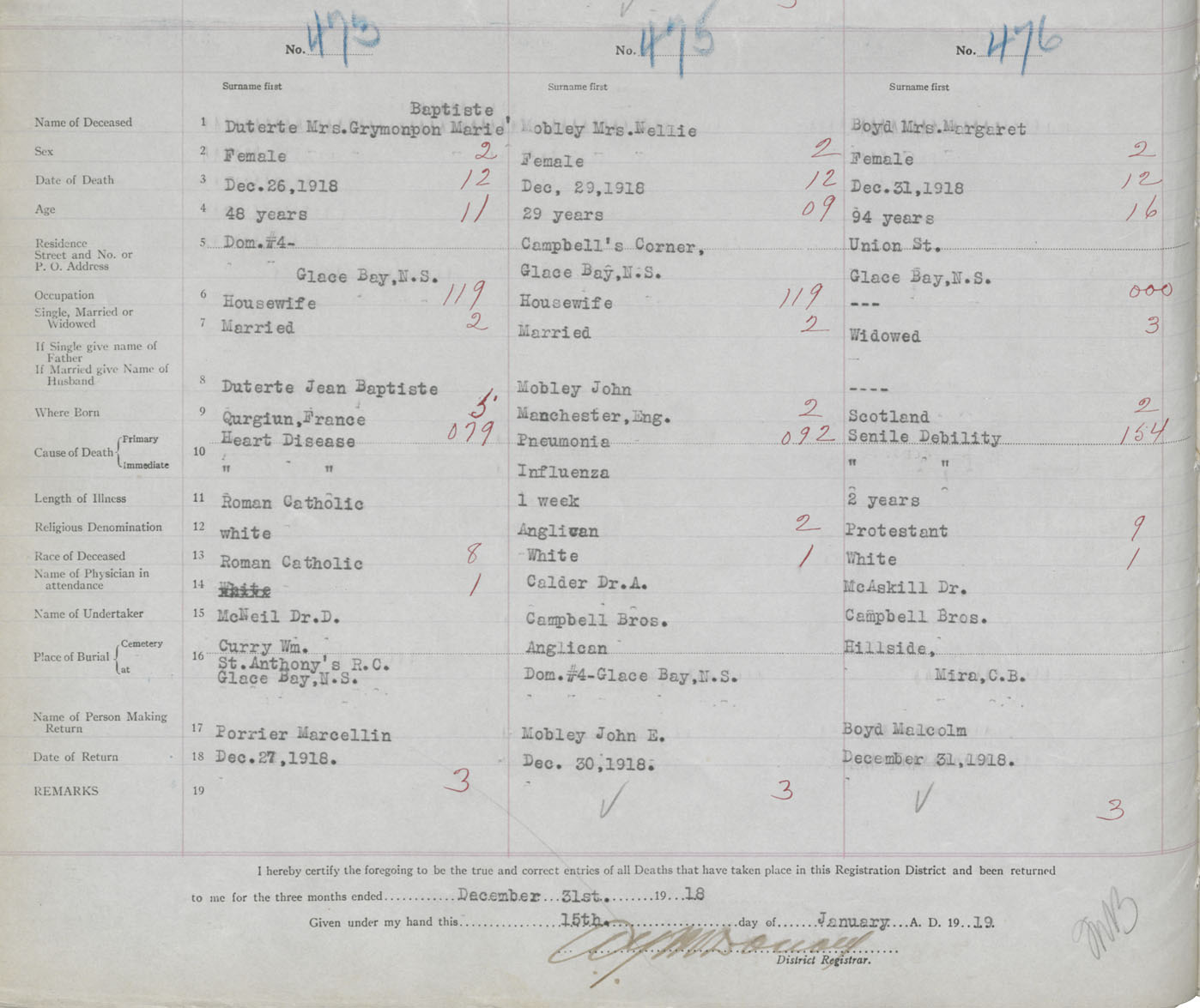 Death Registration: Year: 1918 book: 30 page: 82 number: 476