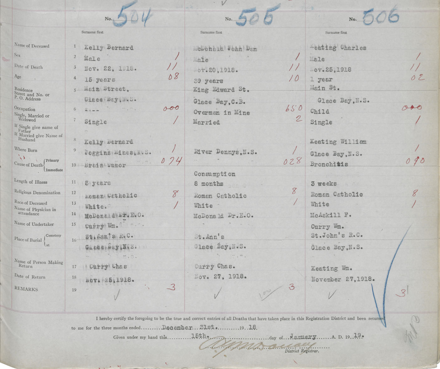 Death Registration: Year: 1918 book: 30 page: 87 number: 506