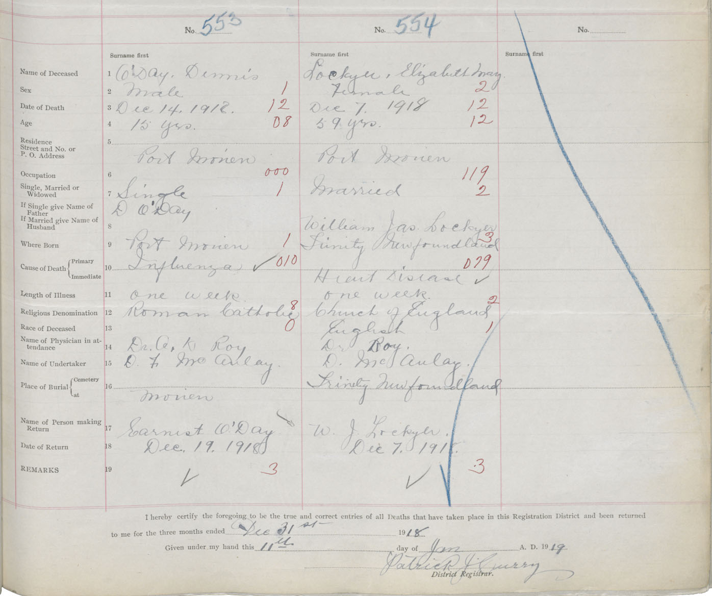 Female Death Registration: Year: 1918 book: 30 page: 101 number: 554