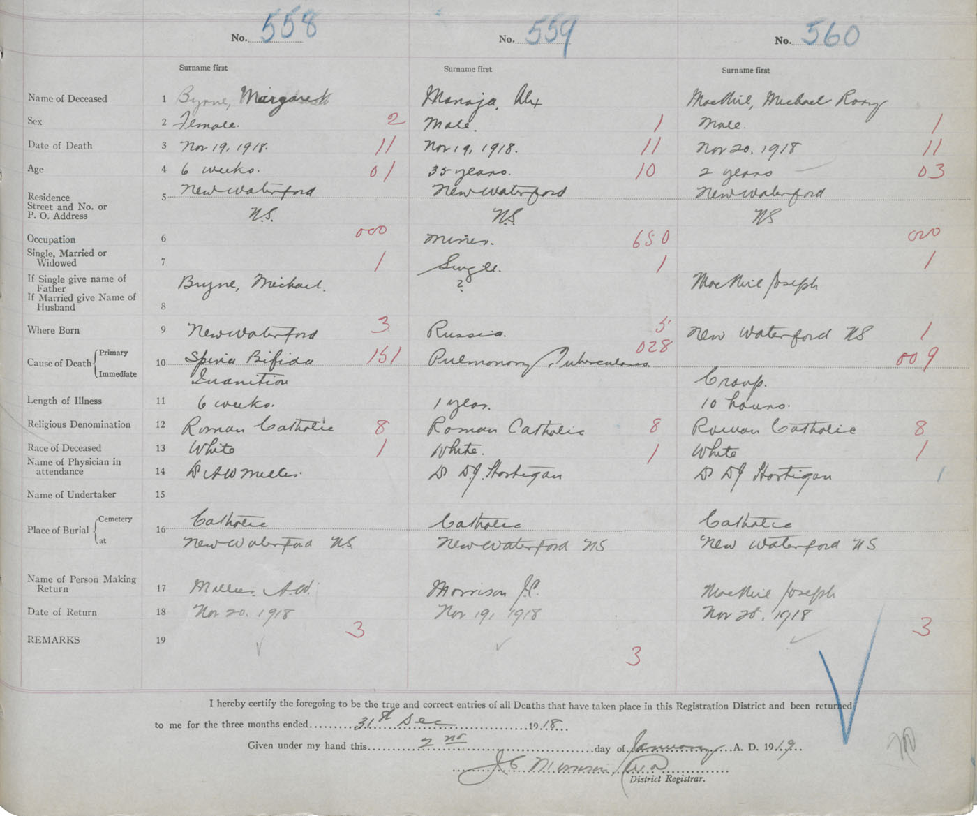 Male Death Registration: Year: 1918 book: 30 page: 103 number: 560