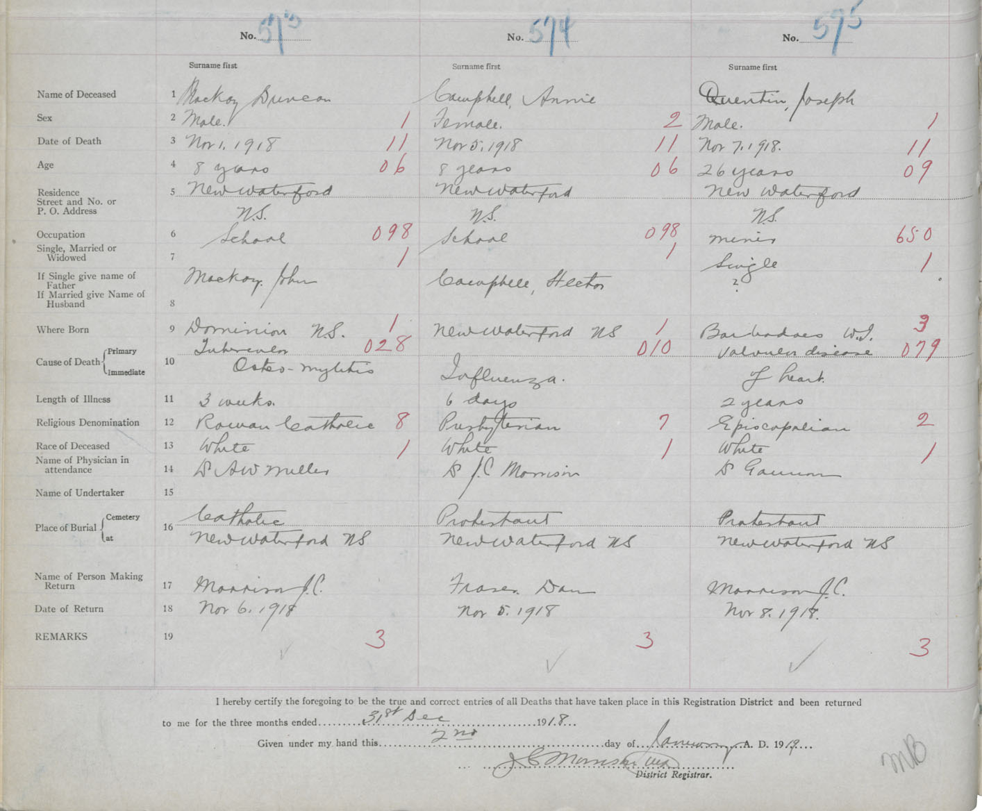 Male Death Registration: Year: 1918 book: 30 page: 106 number: 575