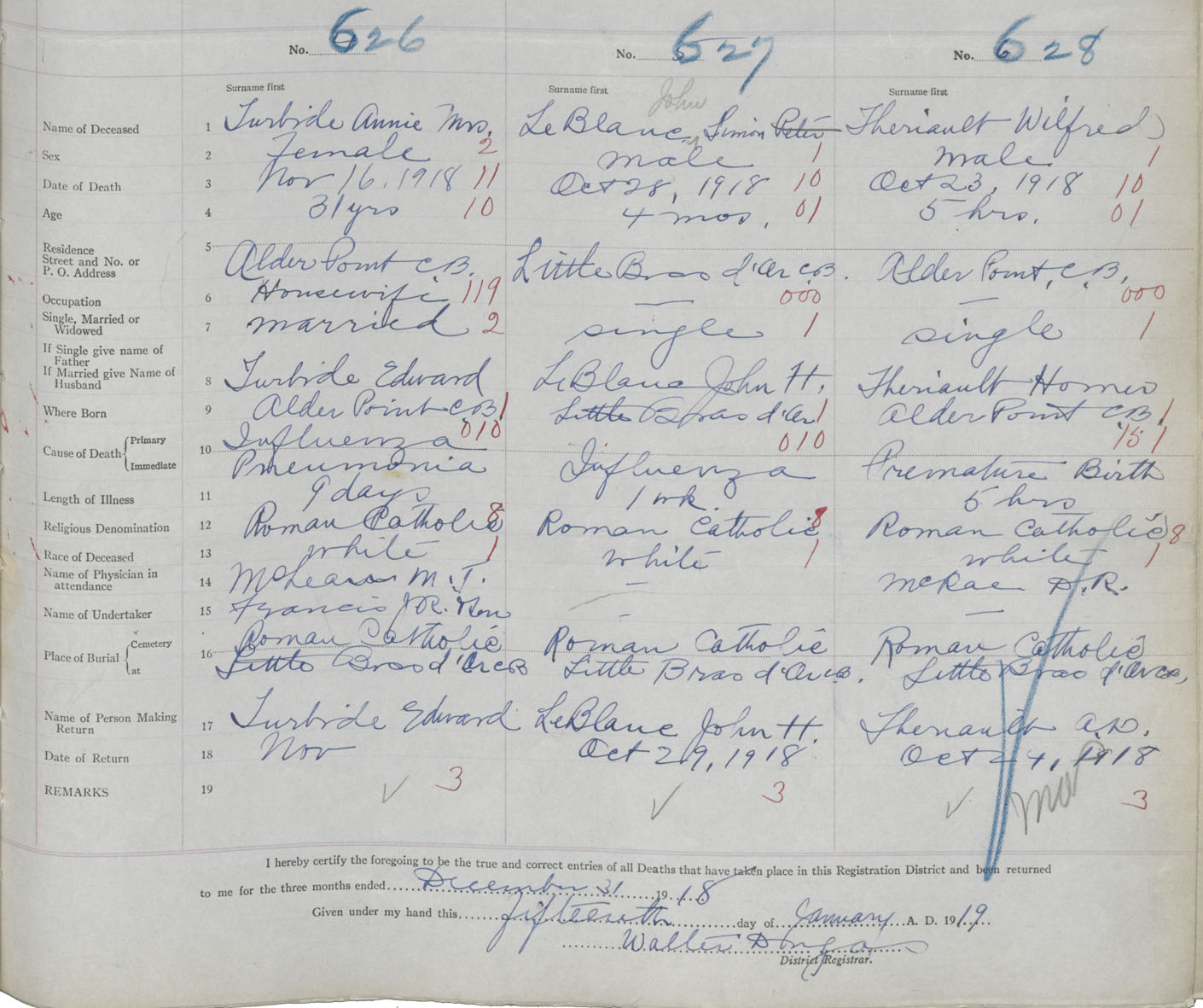 Male Death Registration: Year: 1918 book: 30 page: 121 number: 626