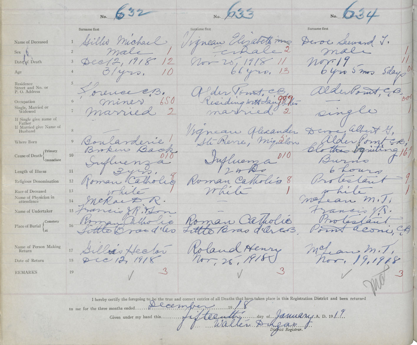 Death Registration: Year: 1918 book: 30 page: 122 number: 632