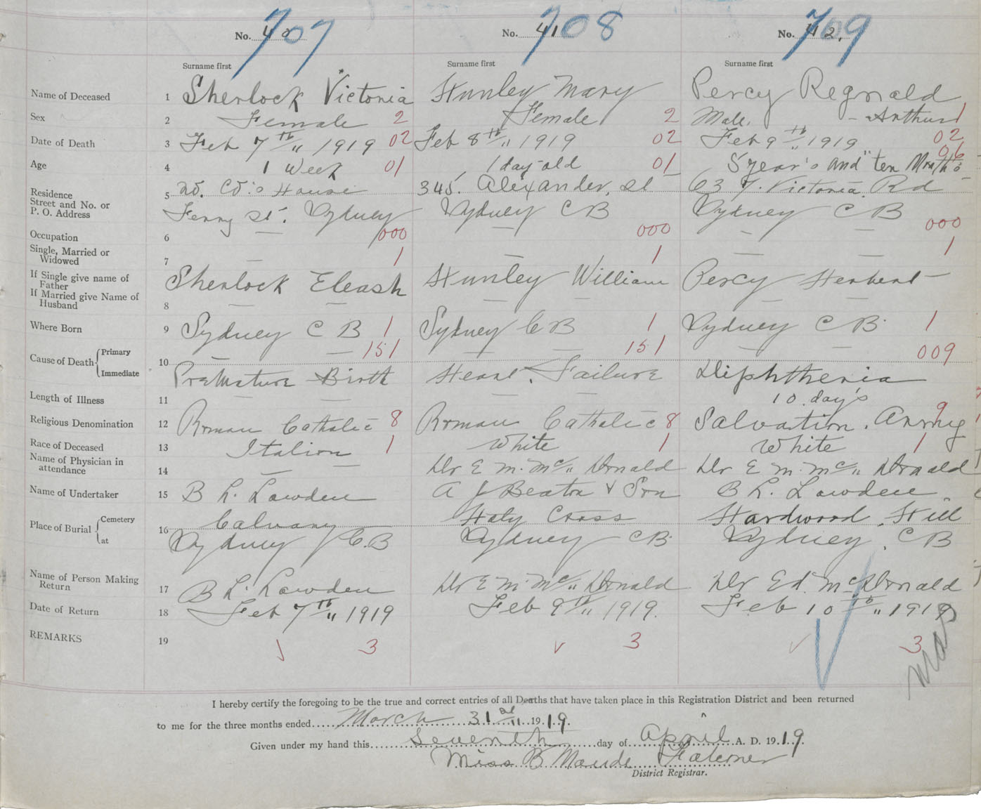 Death Registration: Year: 1919 book: 30 page: 153 number: 707