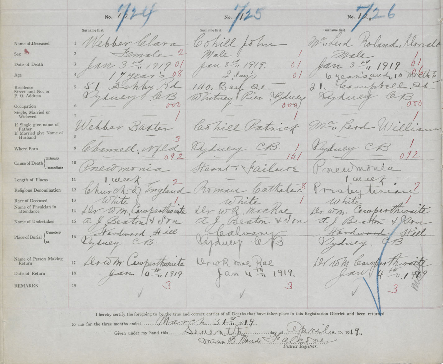 Death Registration: Year: 1919 book: 30 page: 156 number: 724