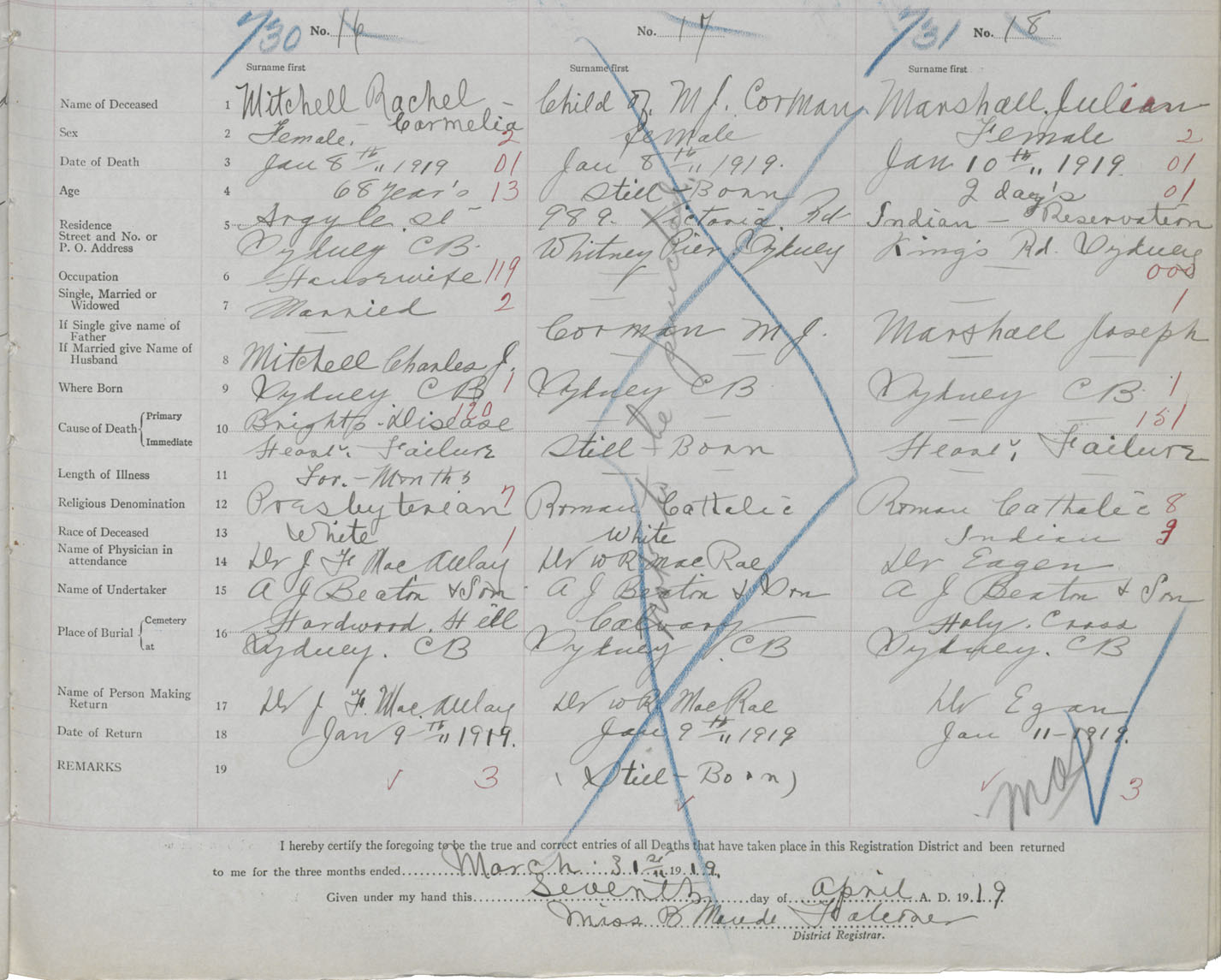 Death Registration: Year: 1919 book: 30 page: 157 number: 730