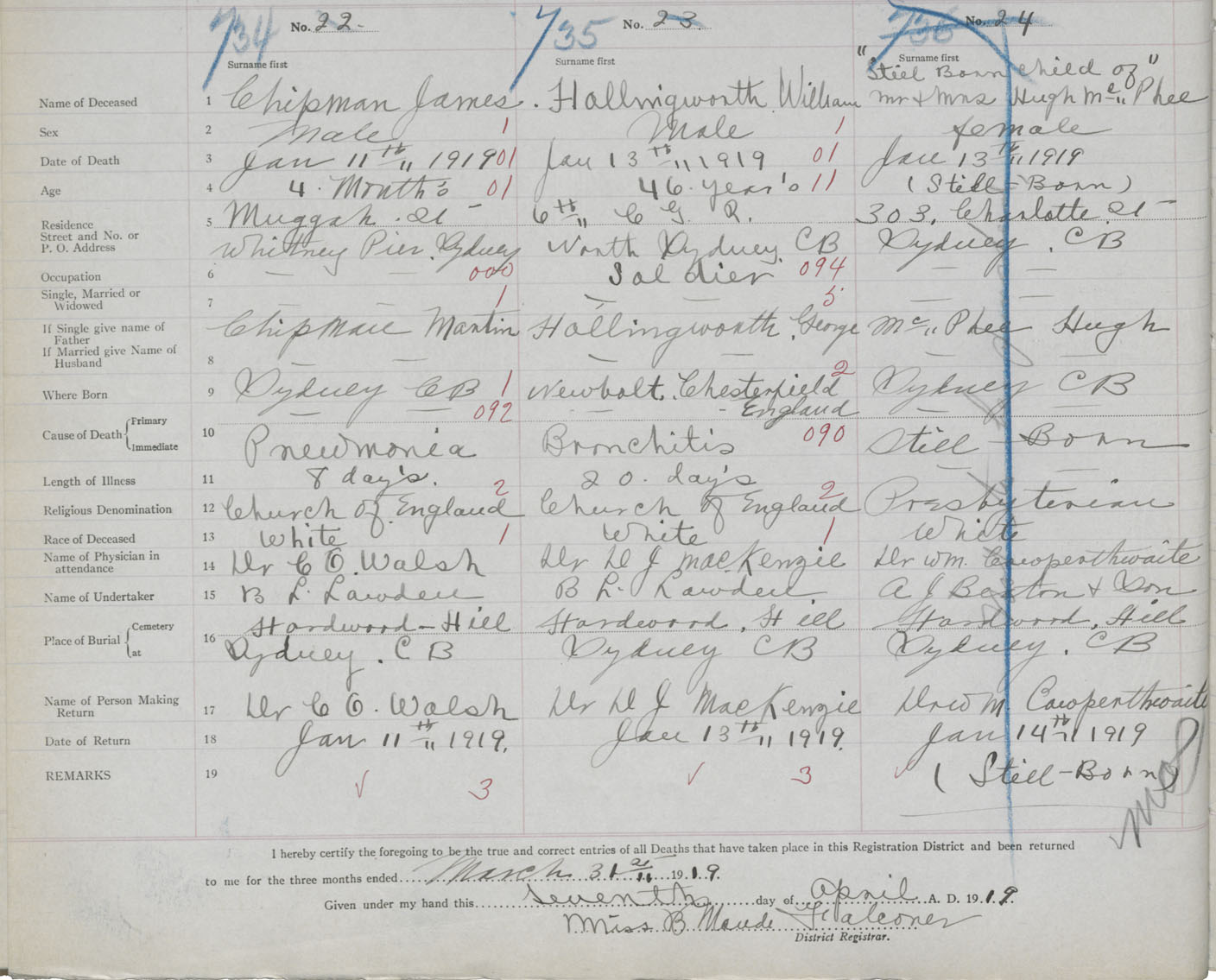 Death Registration: Year: 1919 book: 30 page: 158 number: 734