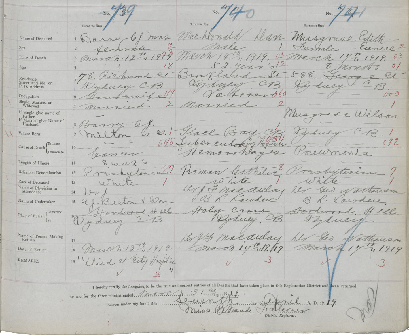 Death Registration: Year: 1919 book: 30 page: 159 number: 739
