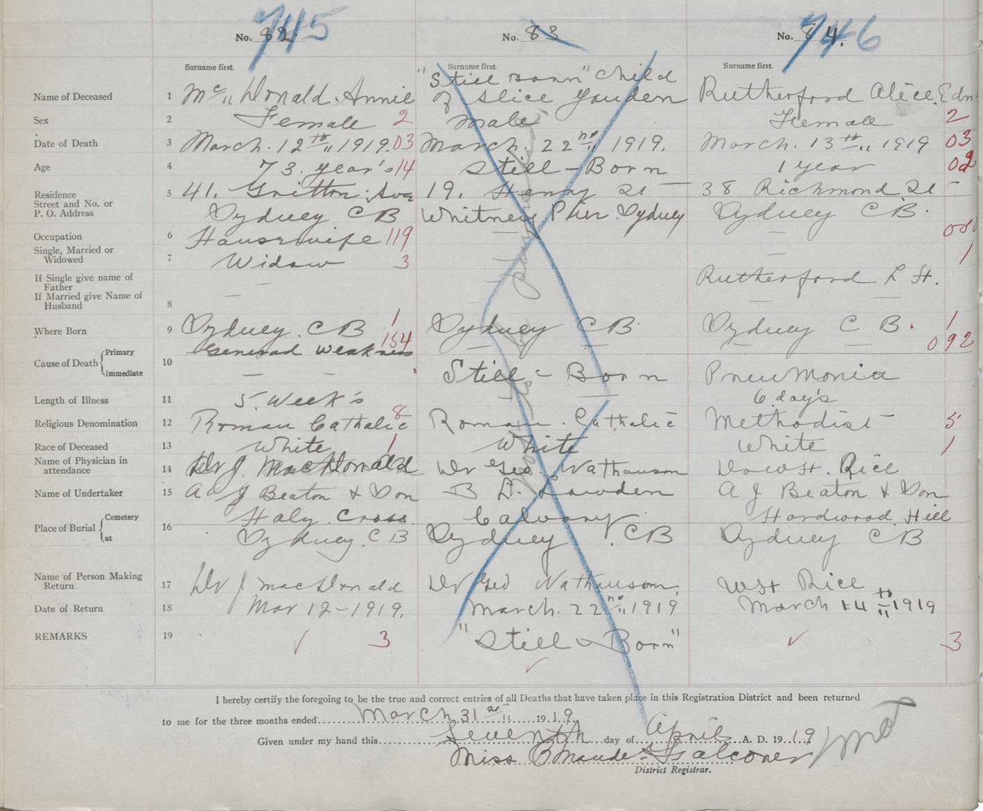 Death Registration: Year: 1919 book: 30 page: 160 number: 745