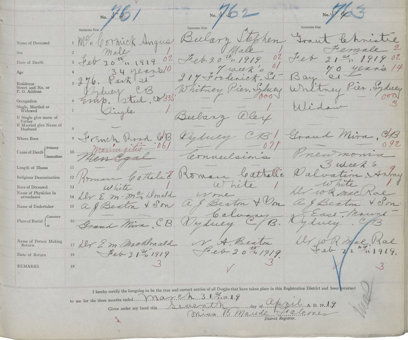 Death Registration: Year: 1919 book: 30 page: 163 number: 761