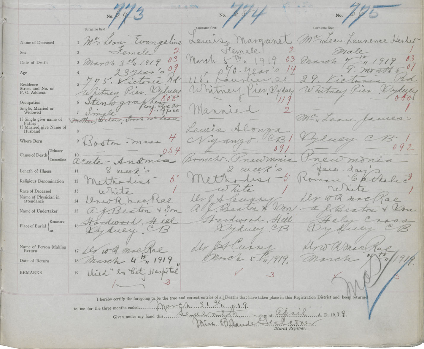 Death Registration: Year: 1919 book: 30 page: 165 number: 775
