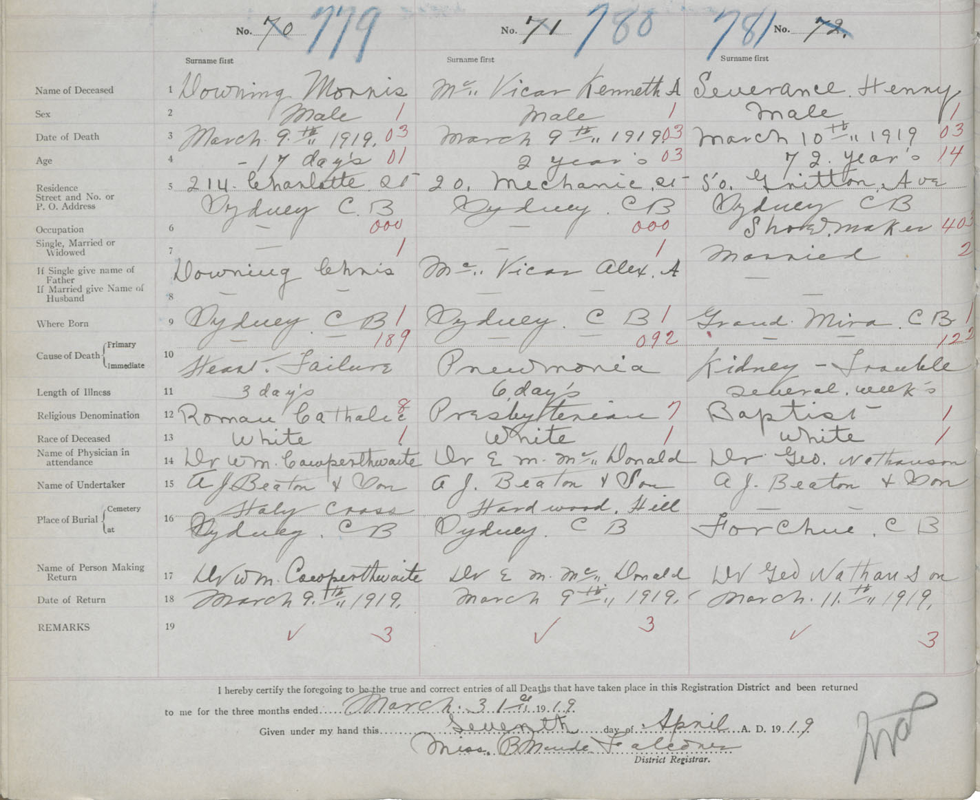 Death Registration: Year: 1919 book: 30 page: 166 number: 781