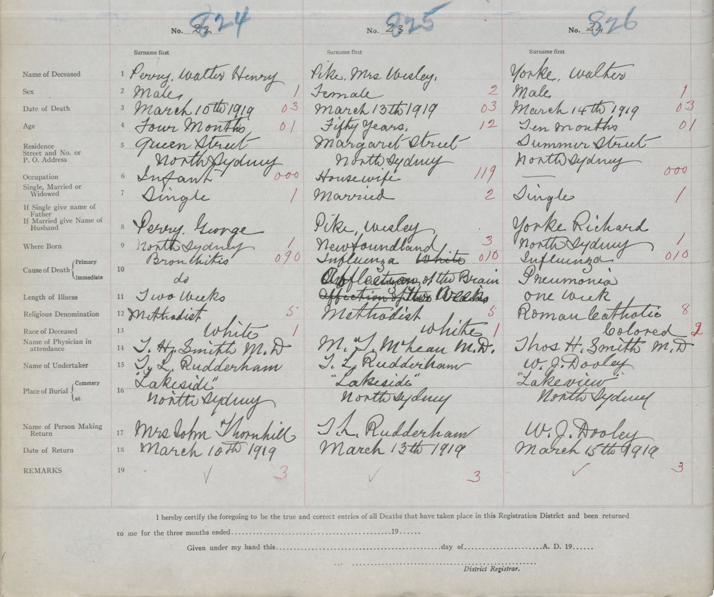 Death Registration: Year: 1919 book: 30 page: 178 number: 826