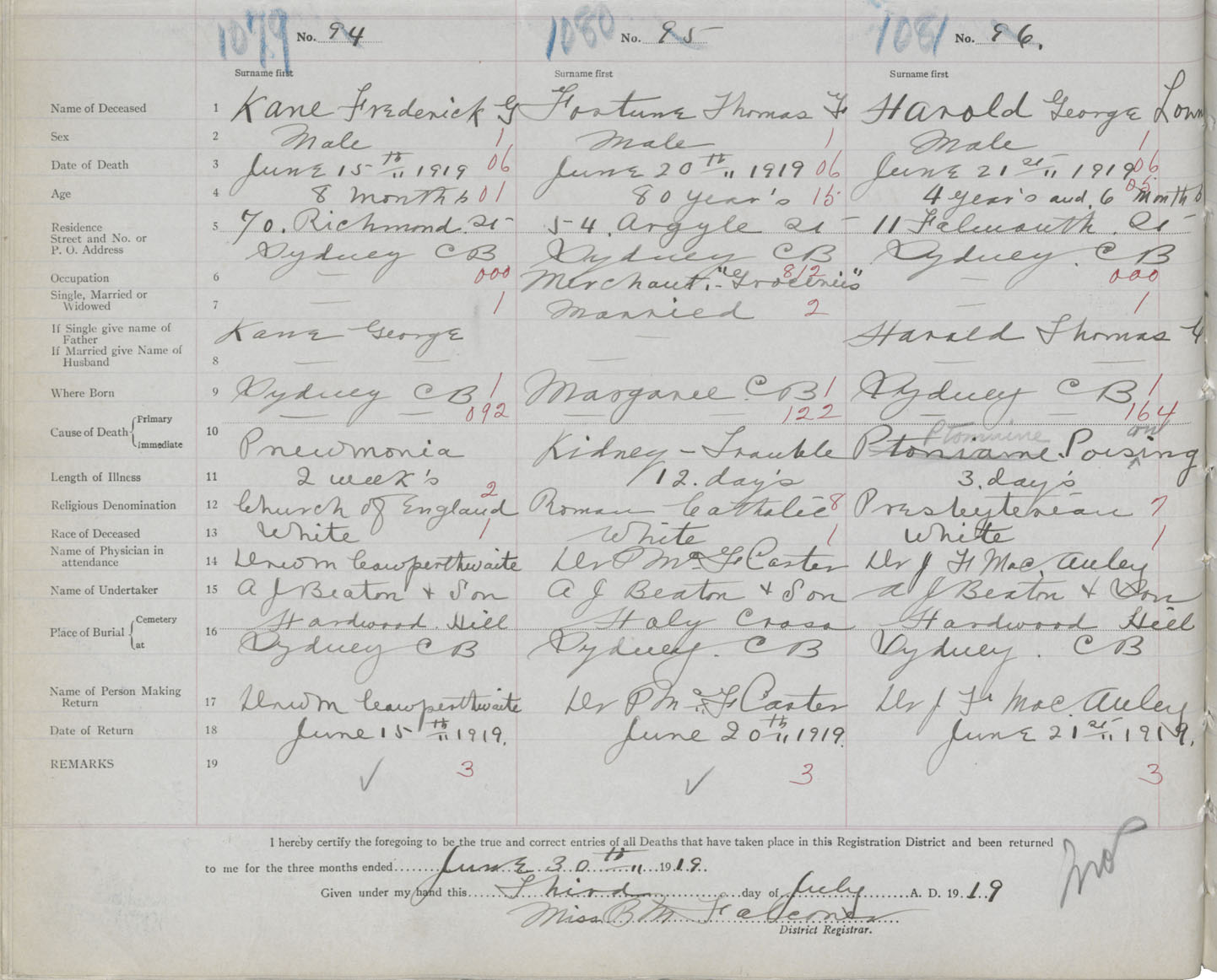 Death Registration: Year: 1919 book: 30 page: 248 number: 1081