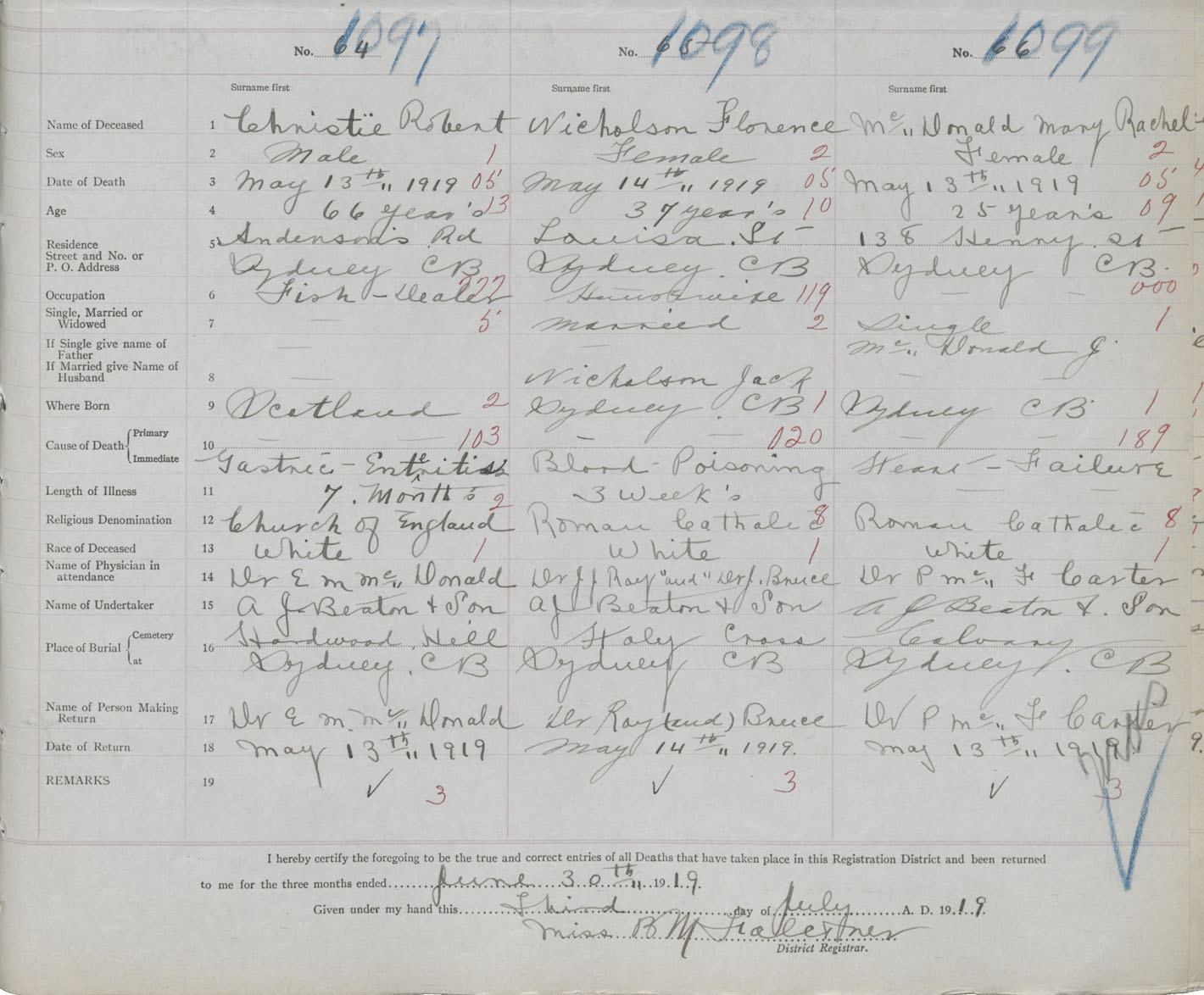 Death Registration: Year: 1919 book: 30 page: 251 number: 1099