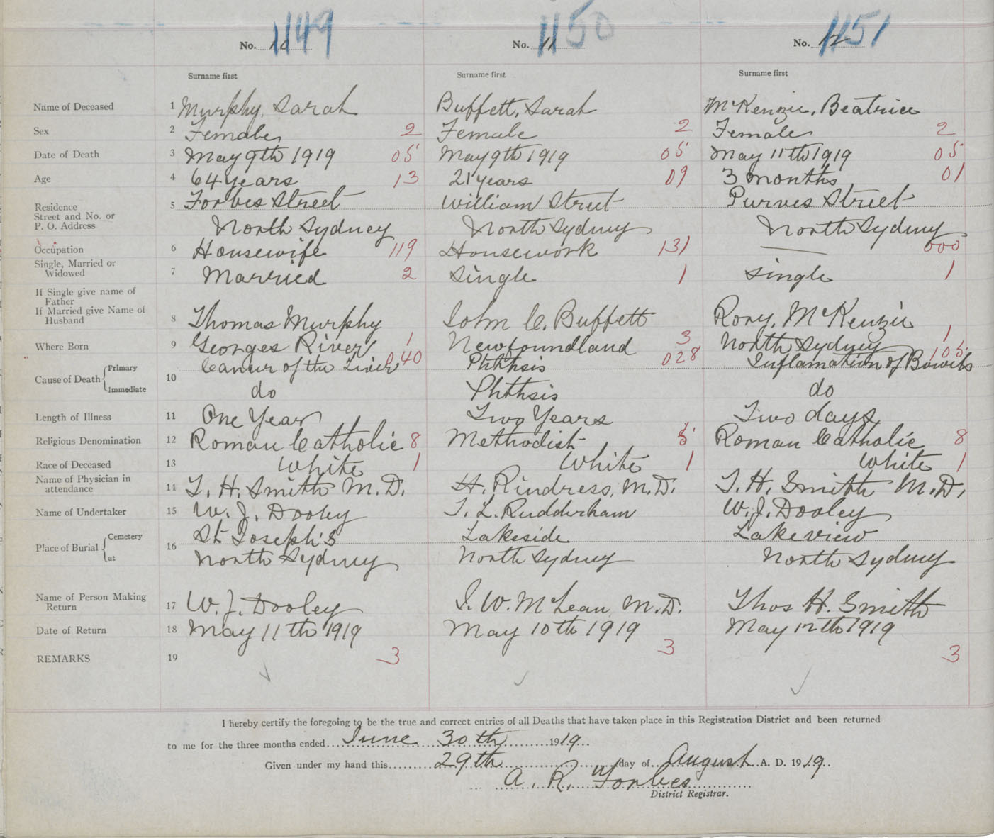 Death Registration: Year: 1919 book: 30 page: 262 number: 1151