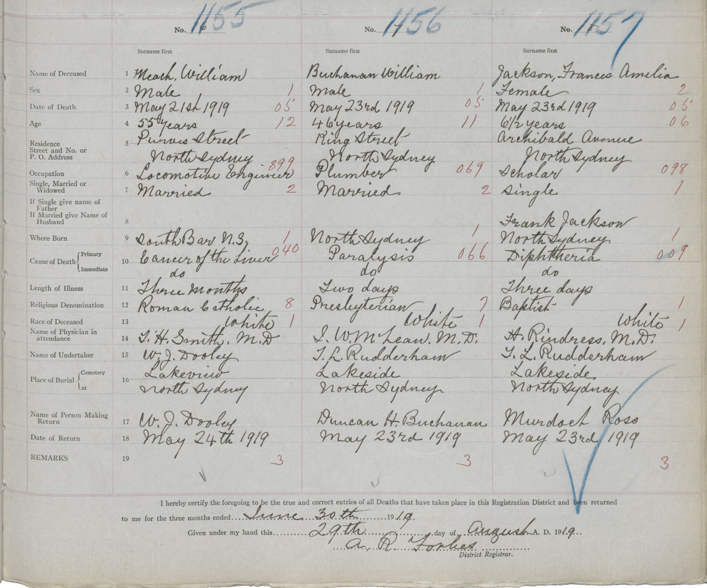 Death Registration: Year: 1919 book: 30 page: 263 number: 1157