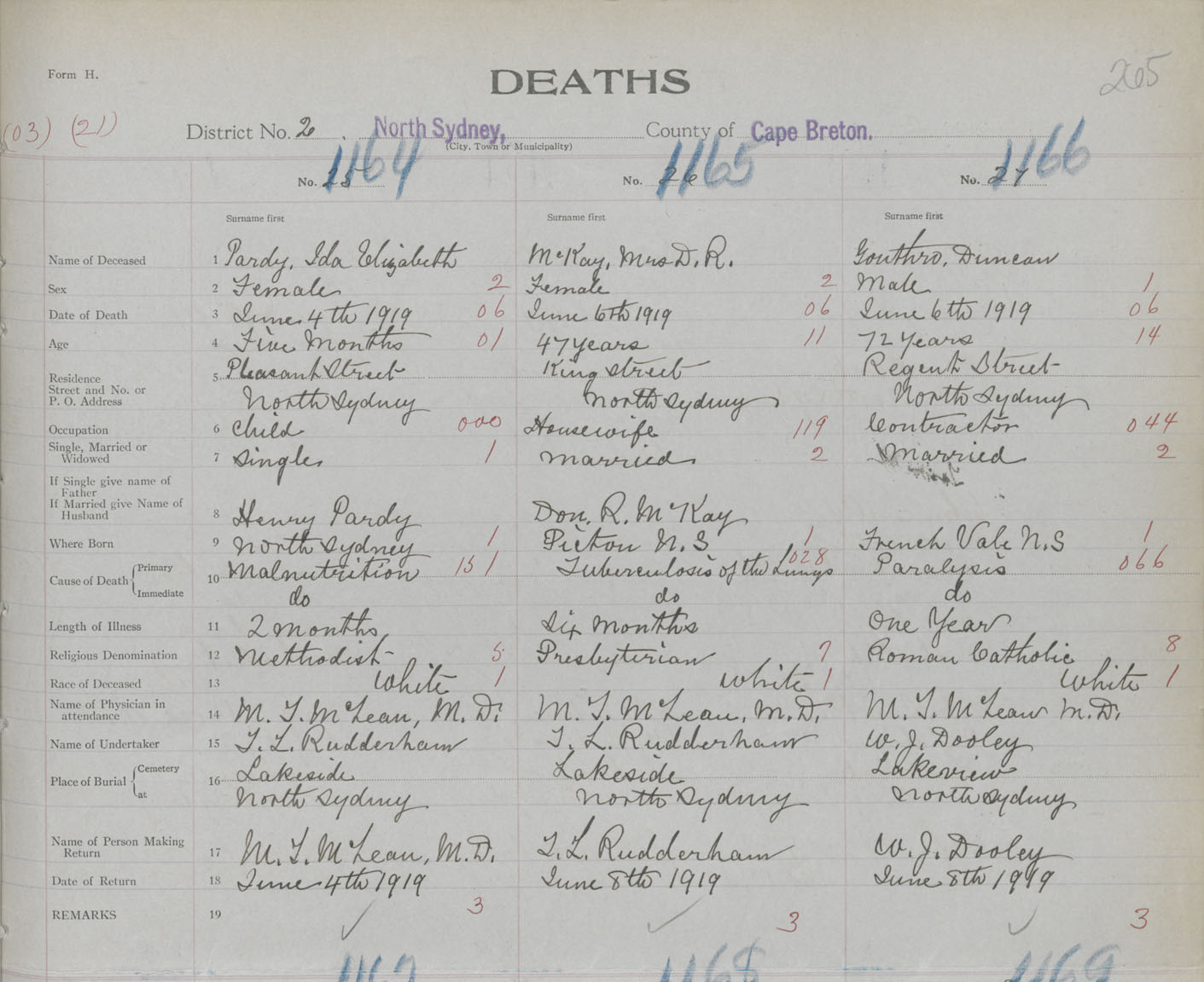 Death Registration: Year: 1919 book: 30 page: 265 number: 1166