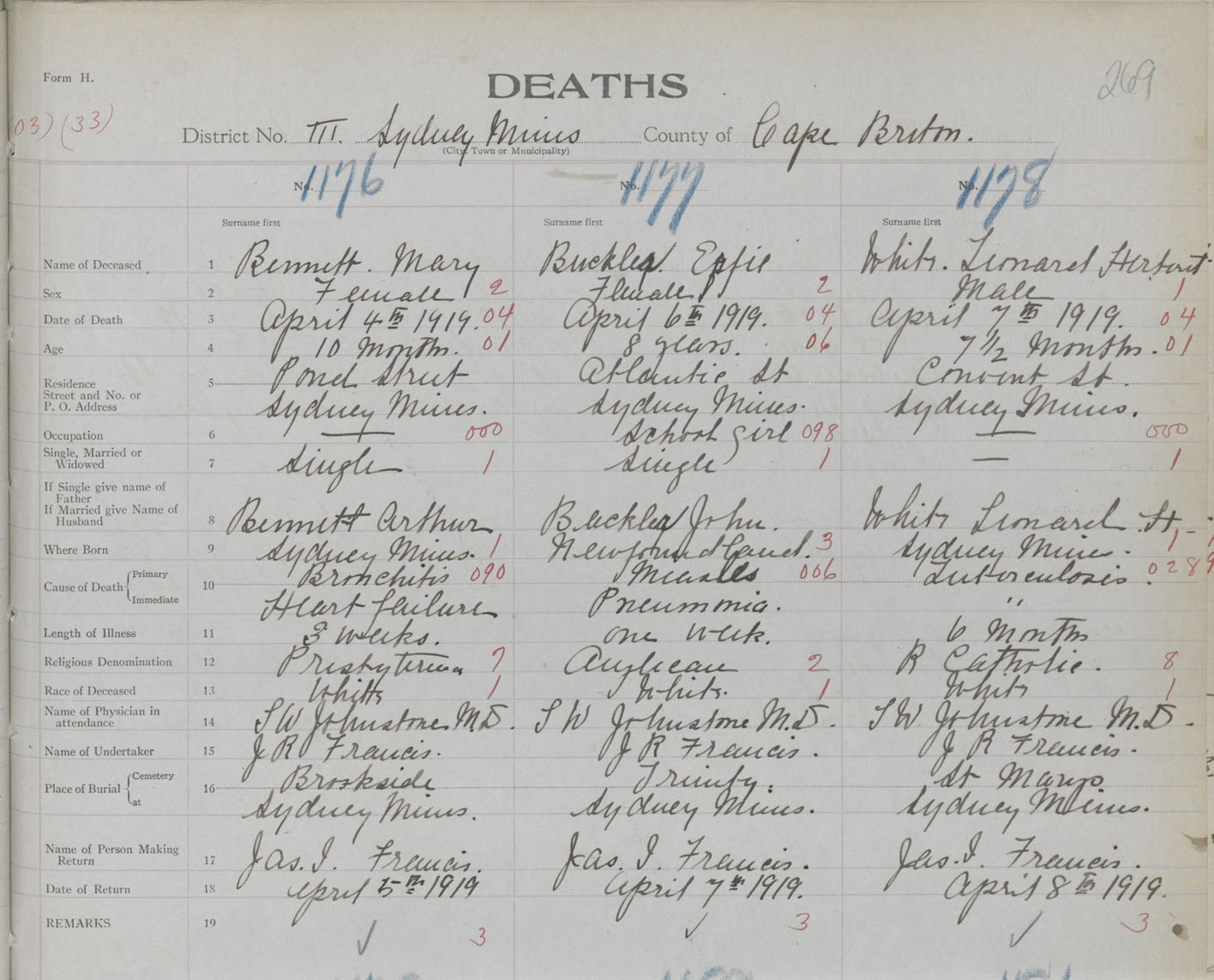 Death Registration: Year: 1919 book: 30 page: 269 number: 1178