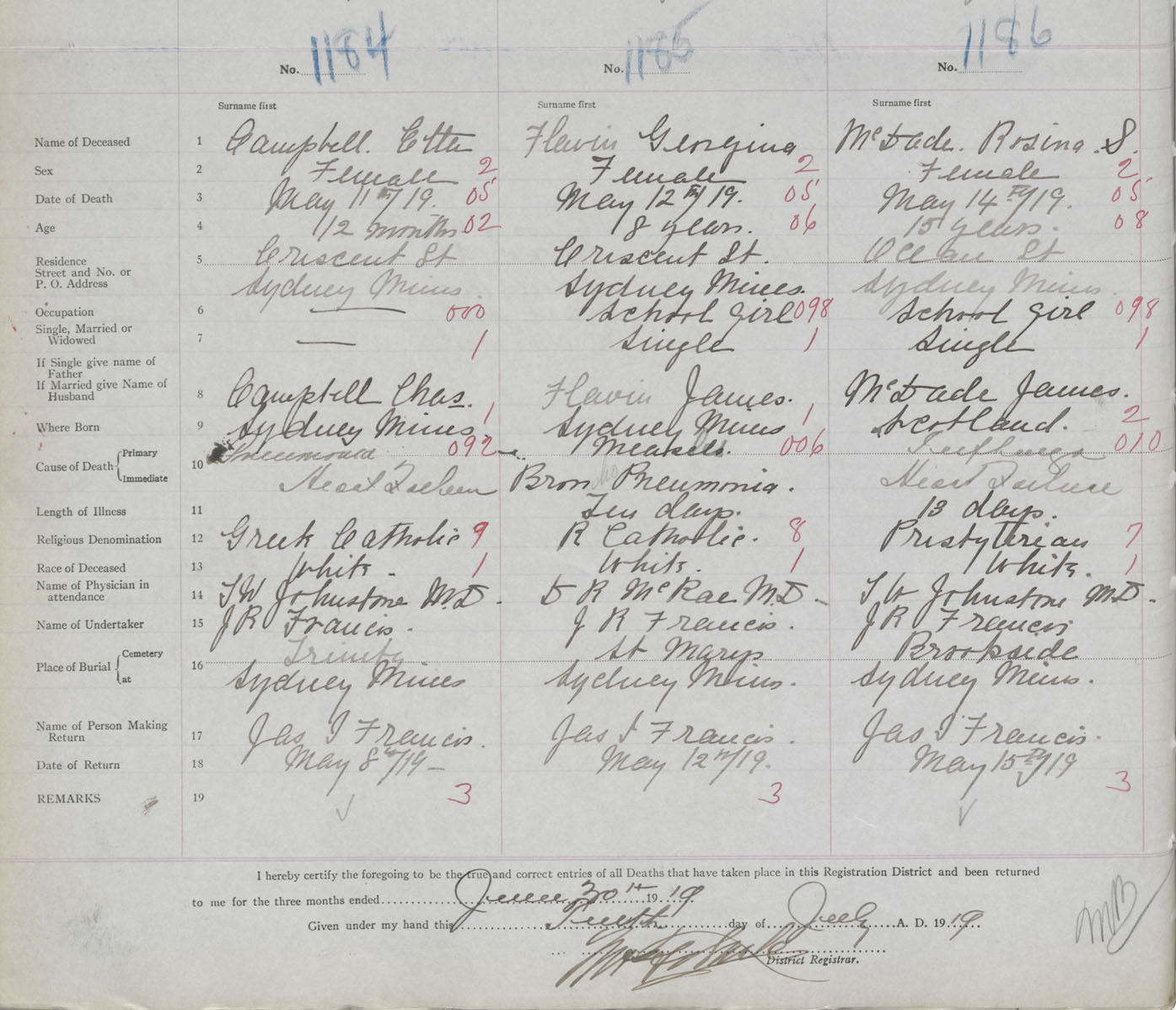 Death Registration: Year: 1919 book: 30 page: 270 number: 1186