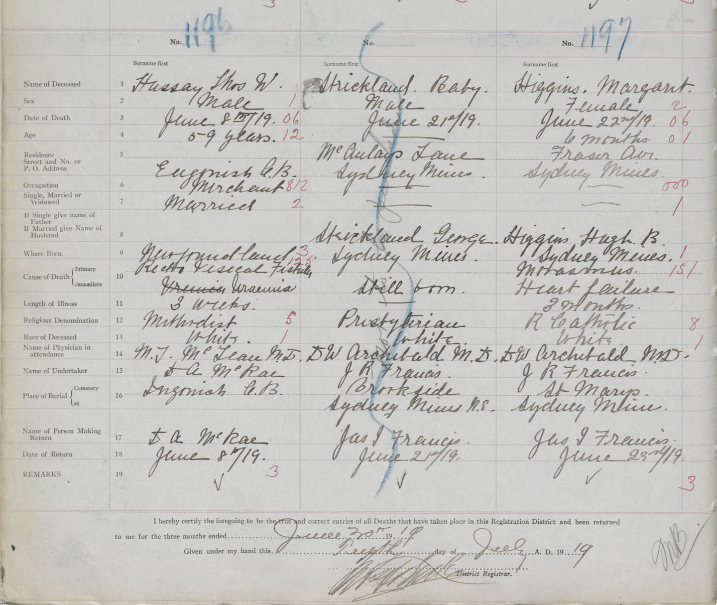 Death Registration: Year: 1919 book: 30 page: 272 number: 1196