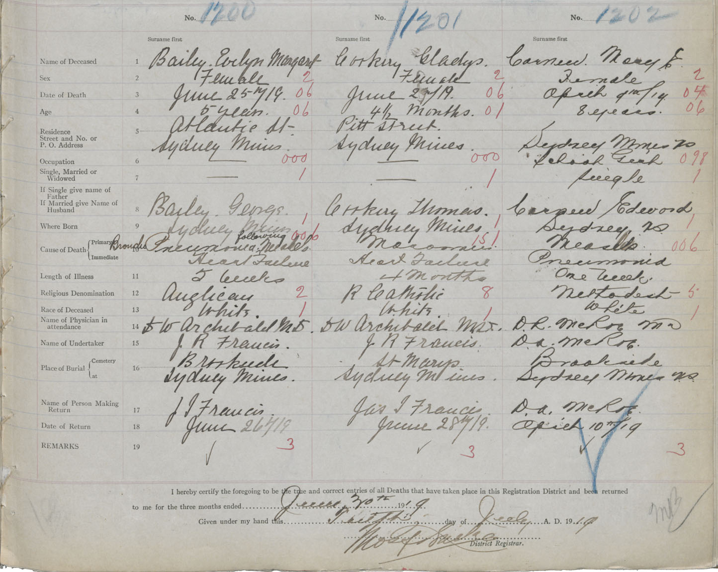 Death Registration: Year: 1919 book: 30 page: 273 number: 1200