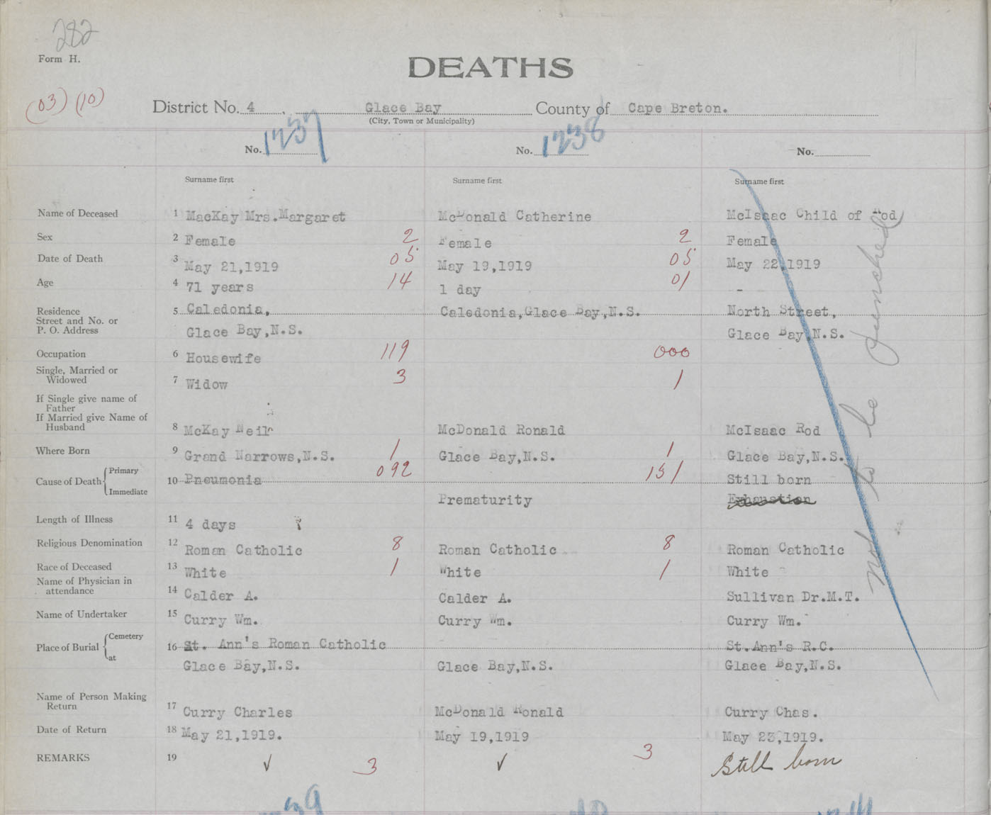 Death Registration: Year: 1919 book: 30 page: 282 number: 1237