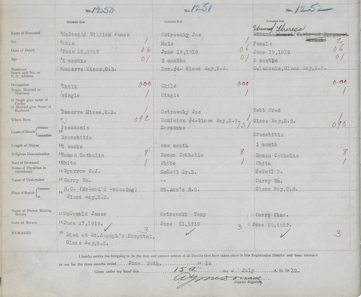 Death Registration: Year: 1919 book: 30 page: 284 number: 1252