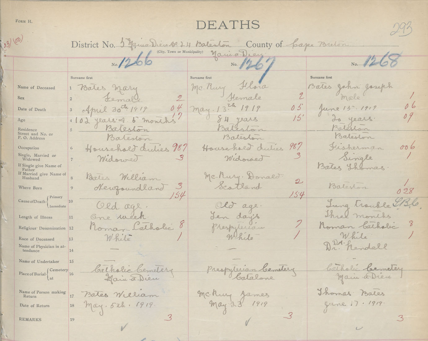 Death Registration: Year: 1919 book: 30 page: 293 number: 1268