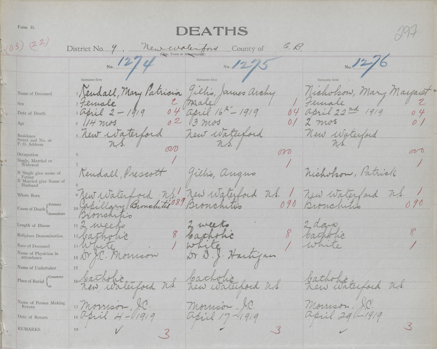 Death Registration: Year: 1919 book: 30 page: 297 number: 1276