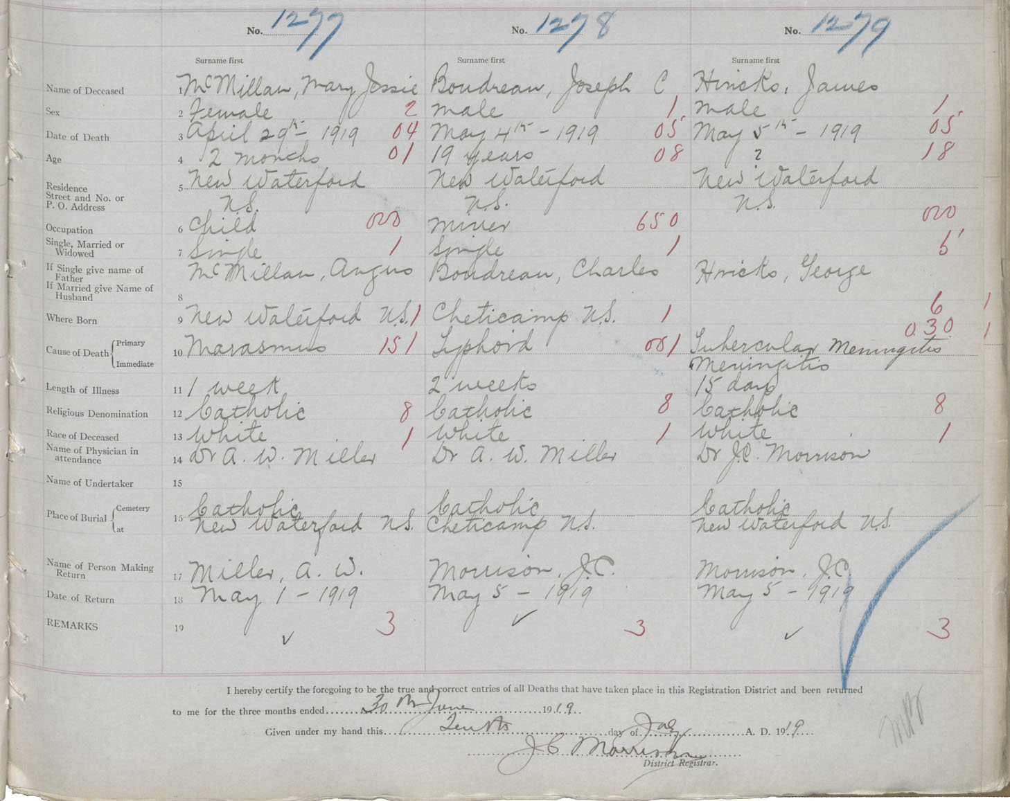 Death Registration: Year: 1919 book: 30 page: 297 number: 1279
