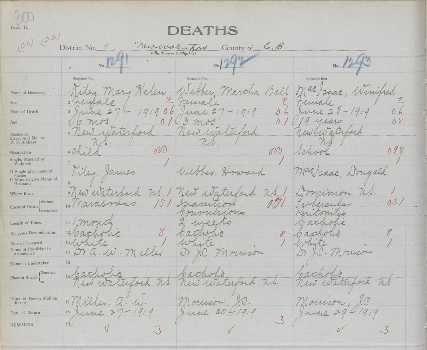 Death Registration: Year: 1919 book: 30 page: 300 number: 1293
