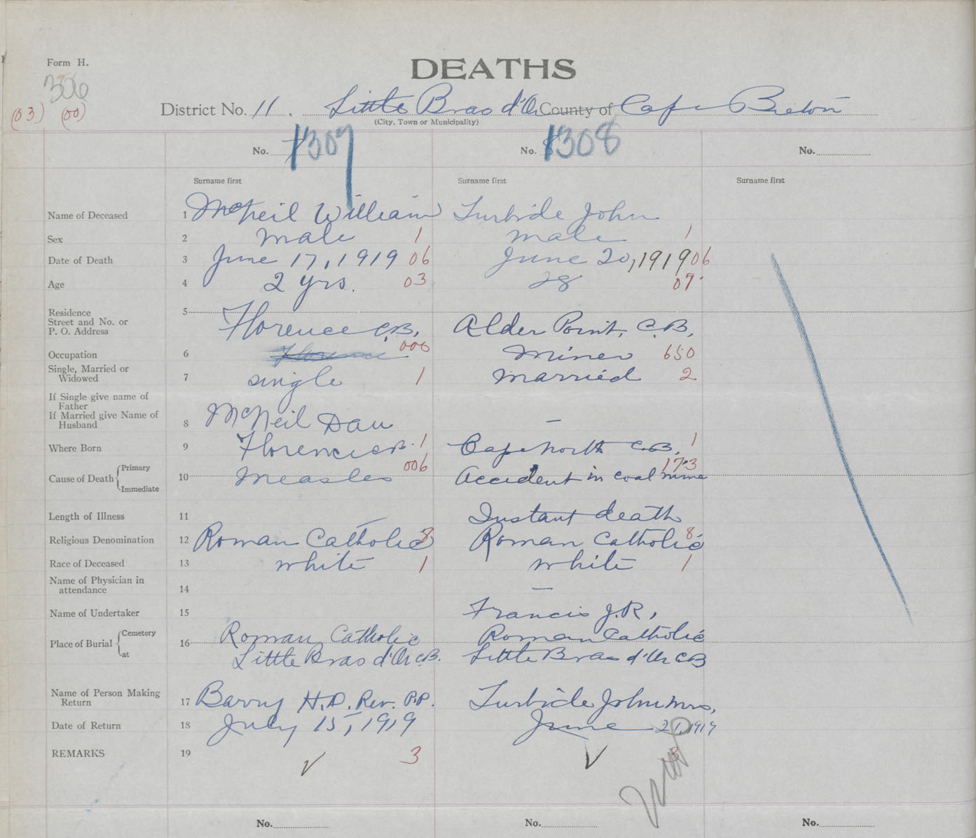 Death Registration: Year: 1919 book: 30 page: 306 number: 1308