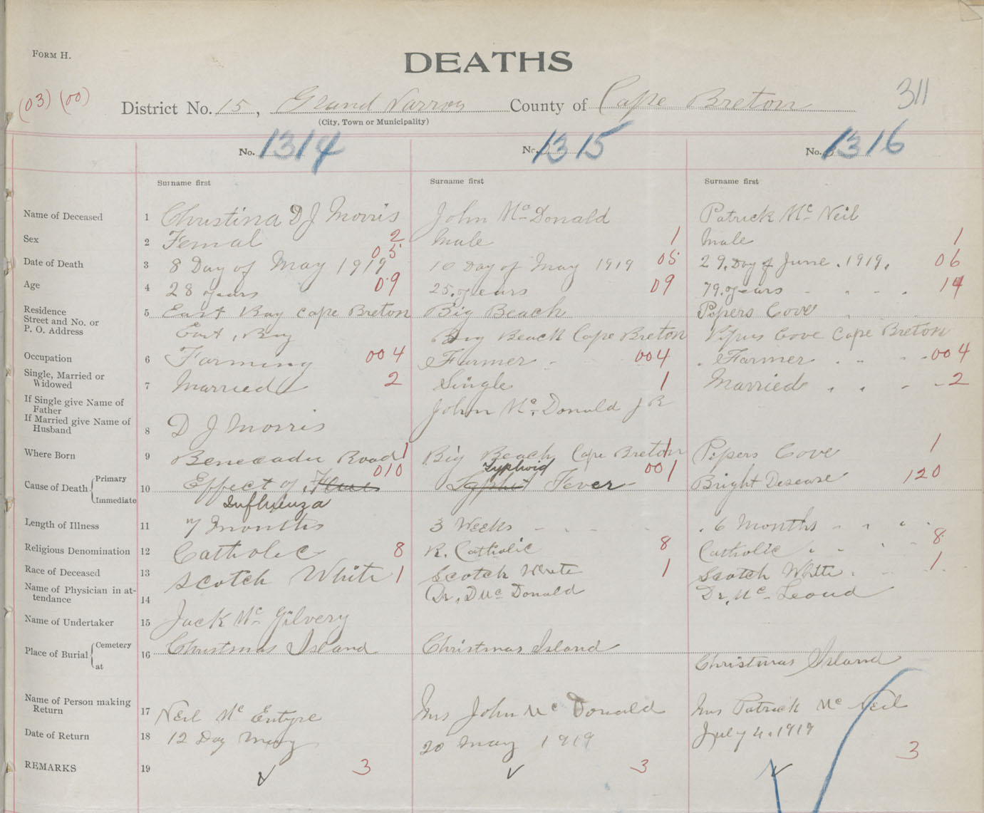 Death Registration: Year: 1919 book: 30 page: 311 number: 1316