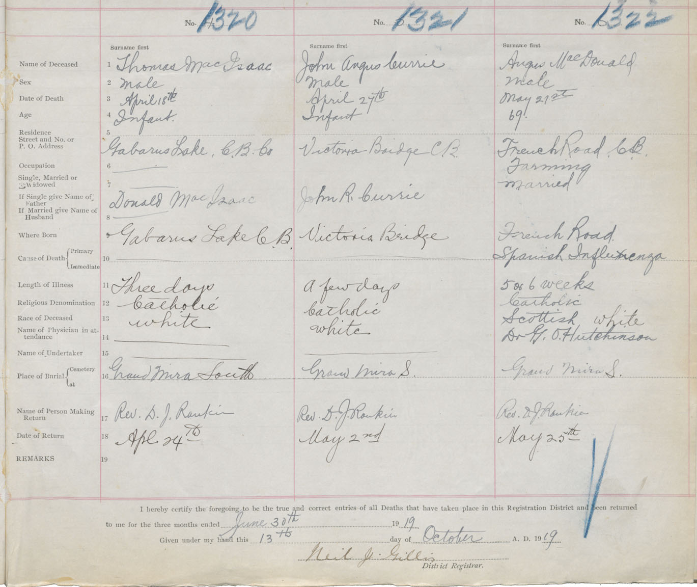 Death Registration: Year: 1919 book: 30 page: 313 number: 1322