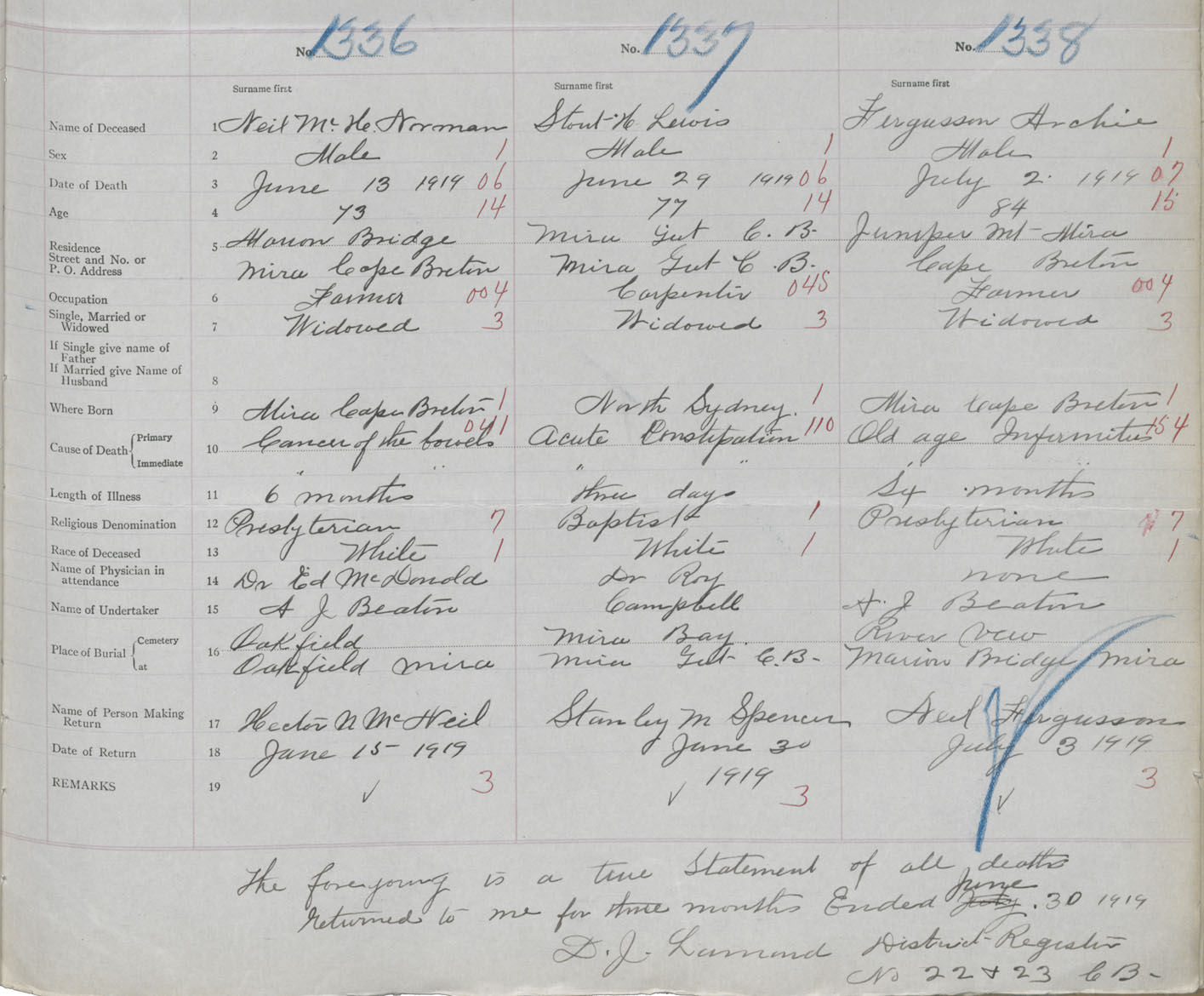 Death Registration: Year: 1919 book: 30 page: 319 number: 1336