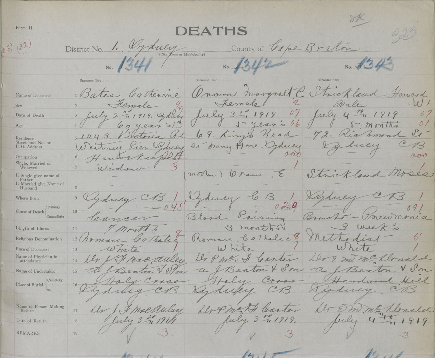 Death Registration: Year: 1919 book: 30 page: 323 number: 1341