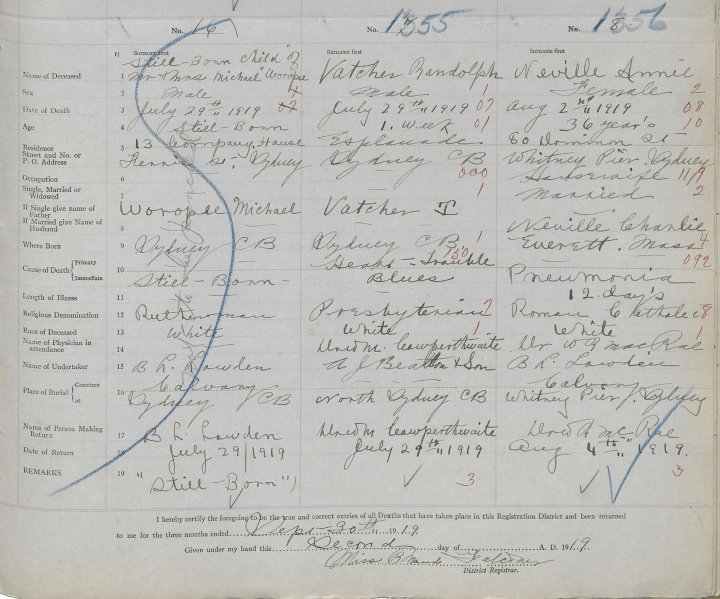 Death Registration: Year: 1919 book: 30 page: 325 number: 1356