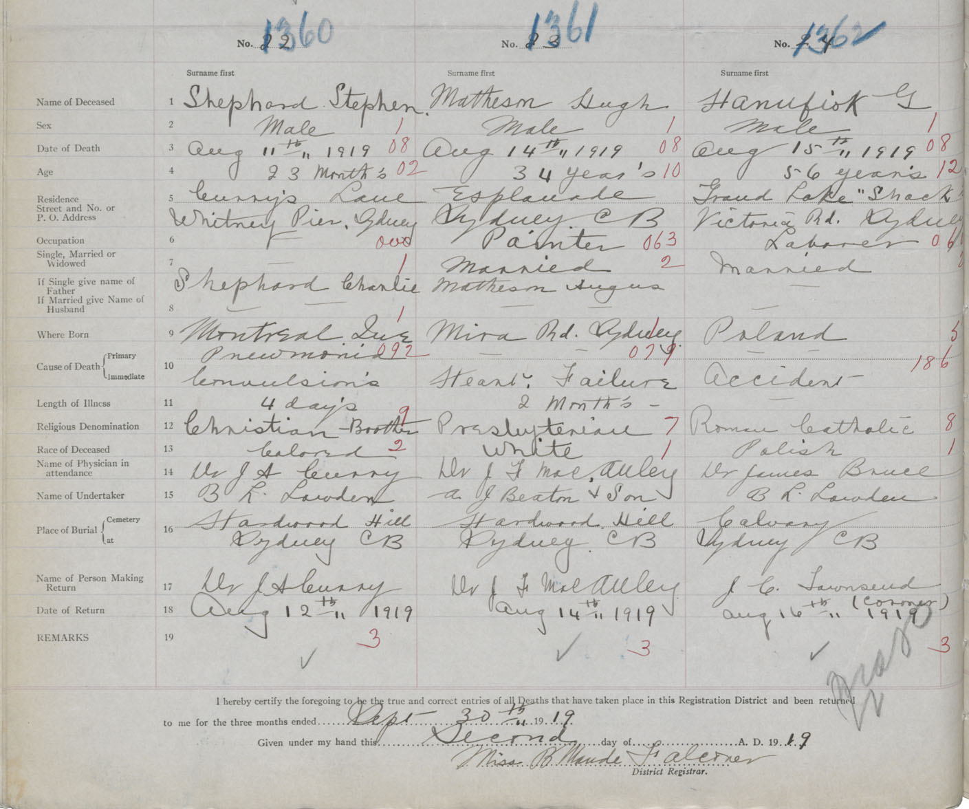 Death Registration: Year: 1919 book: 30 page: 326 number: 1360