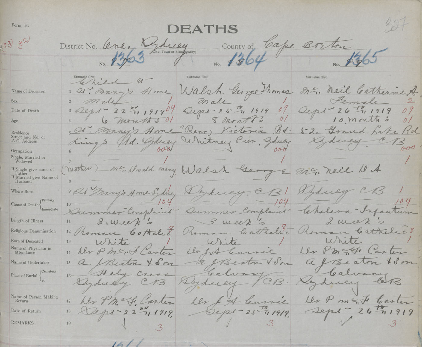 Death Registration: Year: 1919 book: 30 page: 327 number: 1363