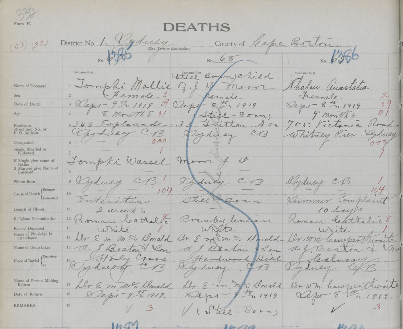 Death Registration: Year: 1919 book: 30 page: 332 number: 1385