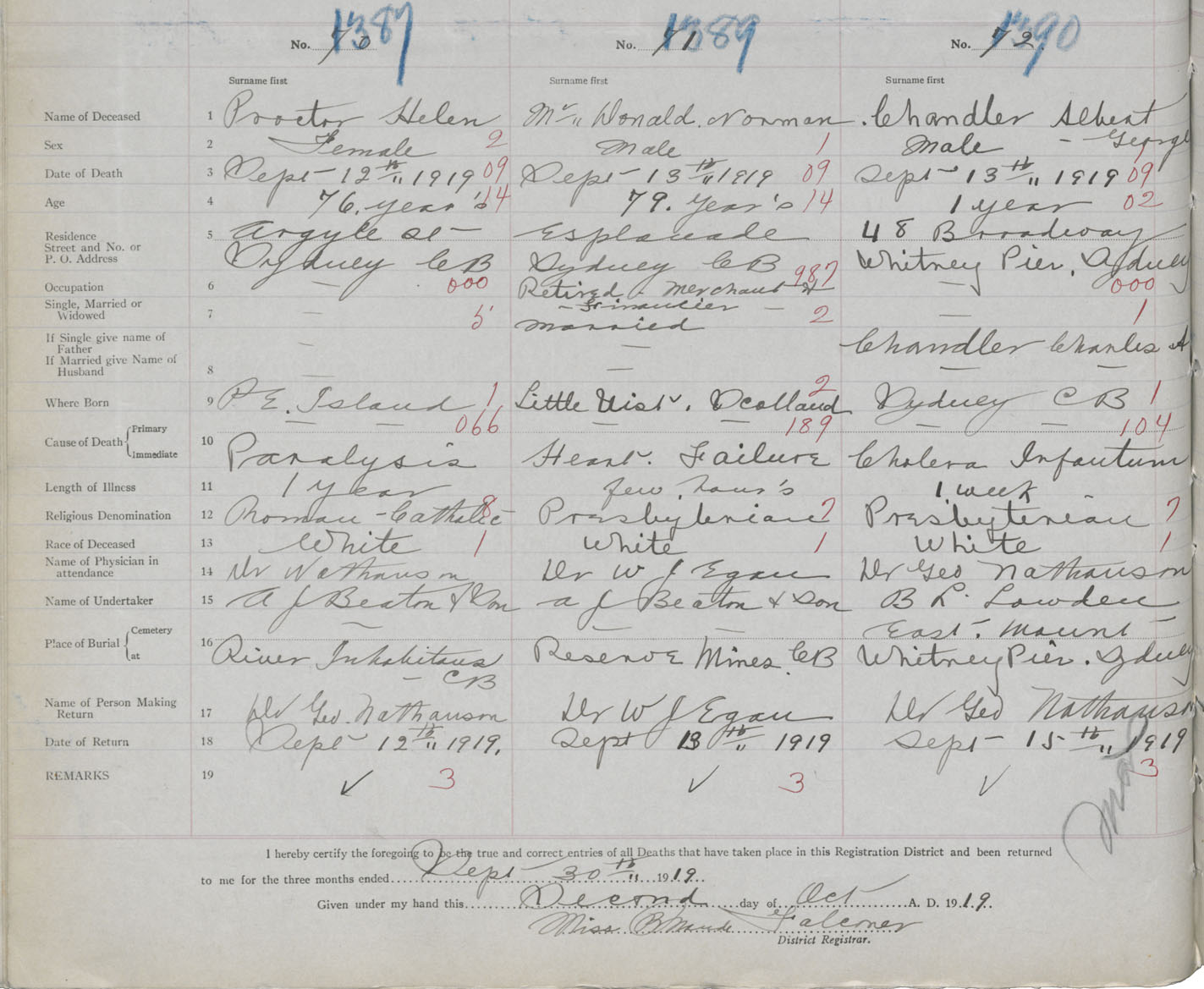 Death Registration: Year: 1919 book: 30 page: 332 number: 1387
