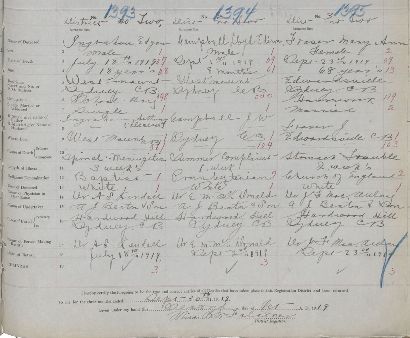 Death Registration: Year: 1919 book: 30 page: 333 number: 1393